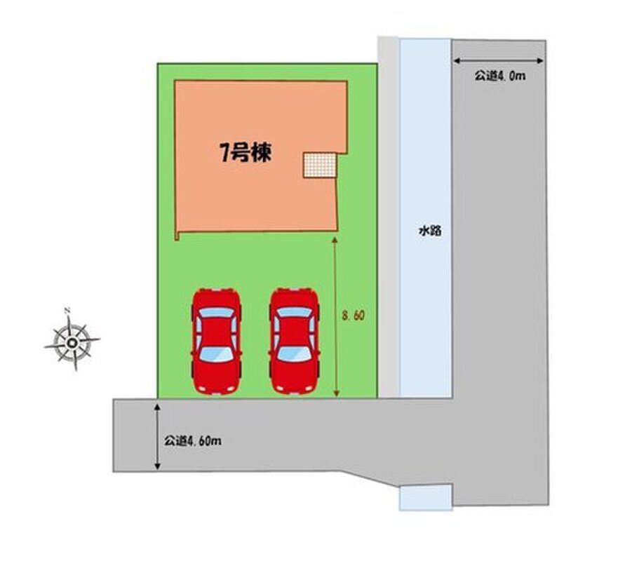 | 駐車場 | 2台(車種による) | 道路の幅員 | 道路幅:4.6m、アスファルト舗装、南側、公道 |