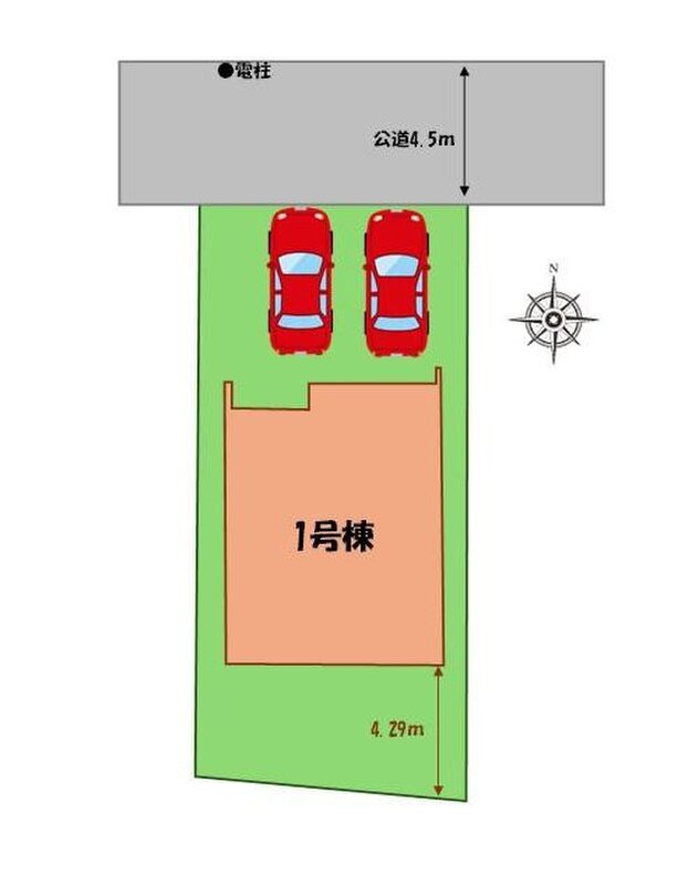 | 駐車場 | 2台(車種による) | 道路の幅員 | 道路幅:4.5m、アスファルト舗装、北側、公道 |