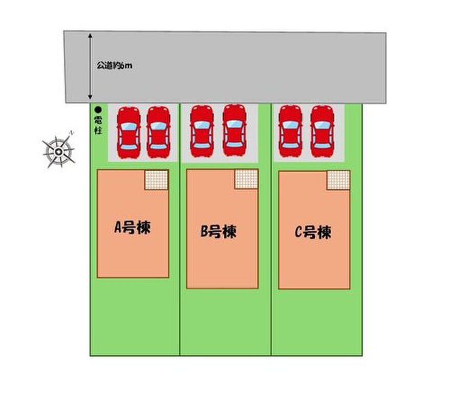 | 駐車場 | 2台(車種による) | 道路の幅員 | 道路幅:6m、アスファルト舗装、北西側、公道 |