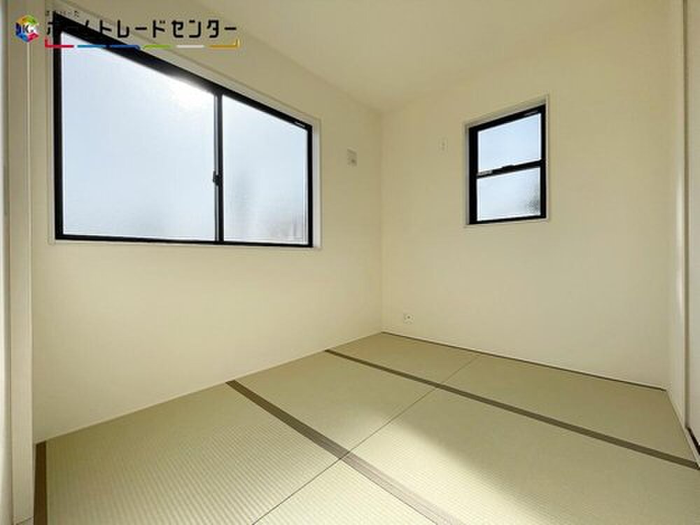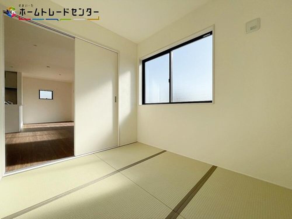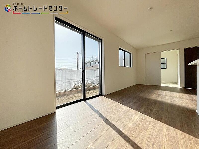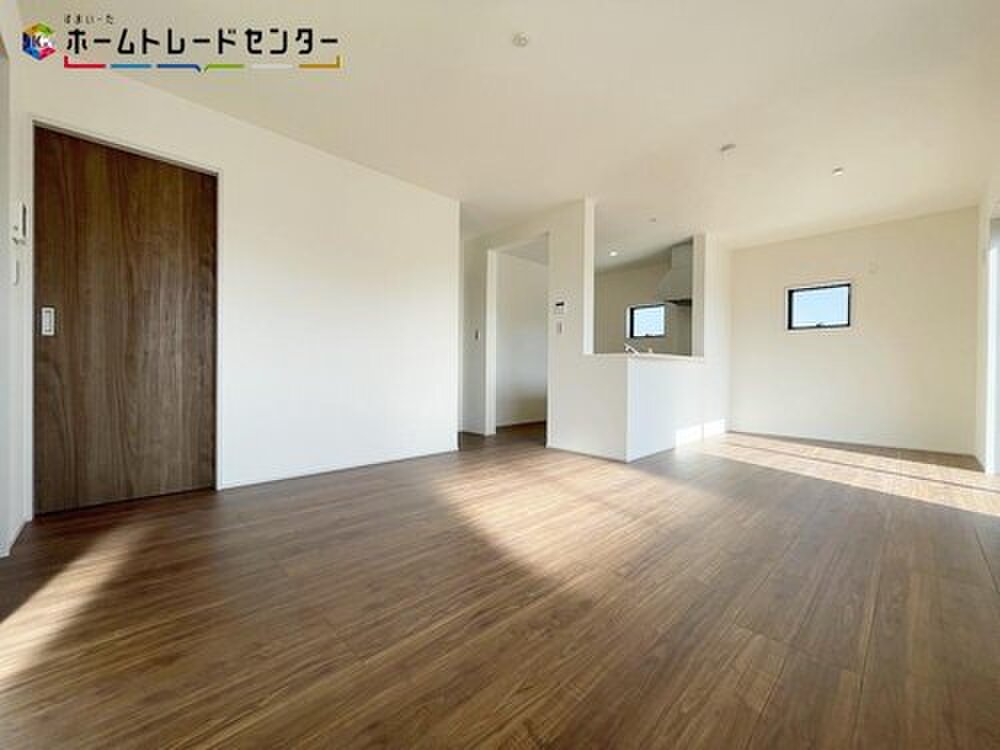 ○リビング隣のお部屋は、お子様の遊び場やお昼寝スペースとしてなど、開放し広々とお使い頂けます。突然の来客時には戸を閉めてリビングの荷物をサッと移動して視線を遮る事も可能です。慌てずに済みますね!