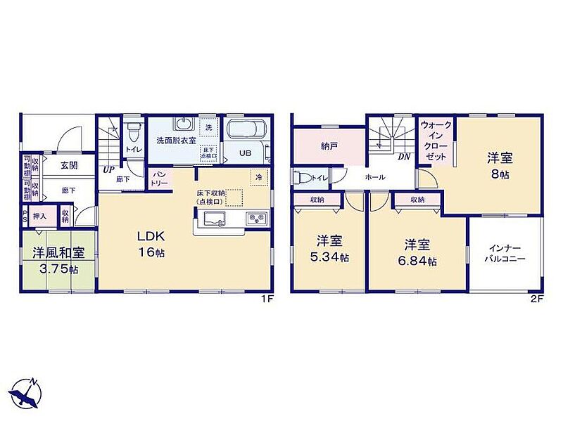 | 間取り | 4LDK+S(納戸) | 建物構造 | 木造在来軸組工法2階建(910モジュール) |