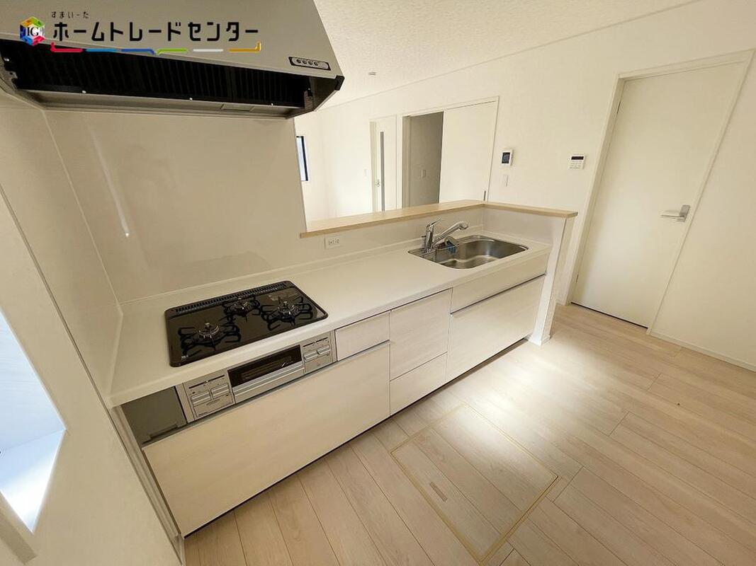 収納豊富で解放感を感じる対面式キッチンです。キッチンに立つ時間も家とのコミュニケーションの時間に。