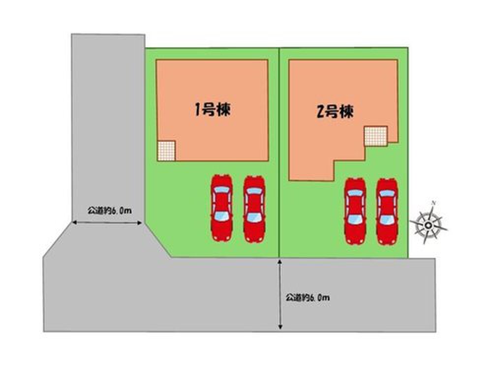 | 駐車場 | 2台(車種による) | 道路の幅員 | 道路幅:6m、アスファルト舗装、南東側、南西側、公道 |