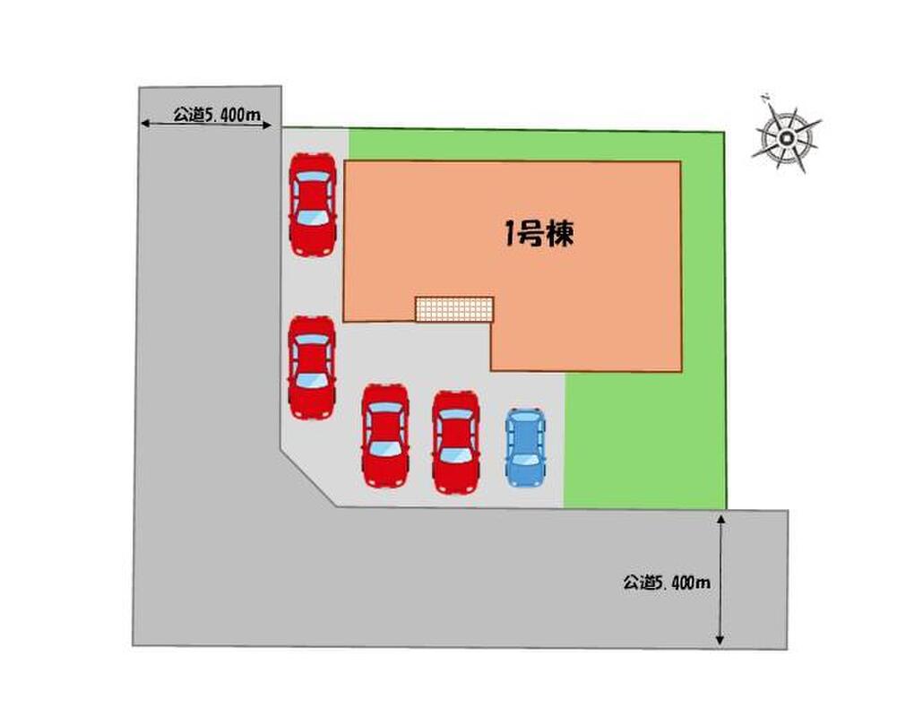 | 駐車場 | 5台(車種による) | 道路の幅員 | 道路幅:5.4m、アスファルト舗装、南側、西側、公道 |