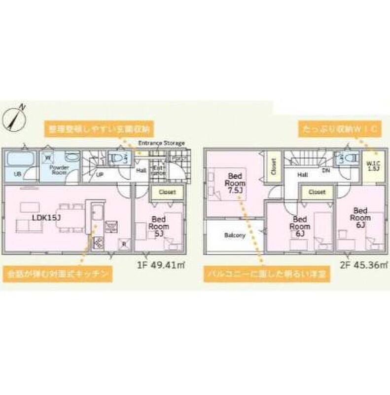 | 建物面積 | 94.77m2・98.01m2 | 土地面積 | 177.01m2・196.9m2 |