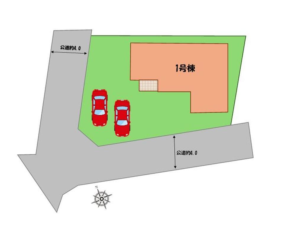 | 駐車場 | 2台(車種による) | 道路の幅員 | 道路幅:4m、アスファルト舗装、北西側、南側、公道 |