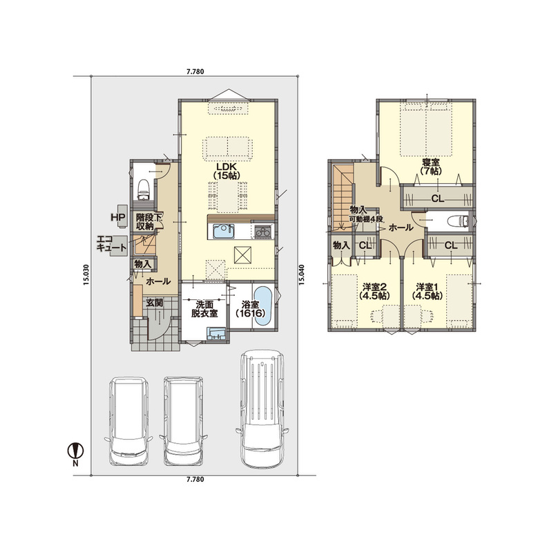 | 駐車場 | 3台 | 道路の幅員 | 北側6.0m |