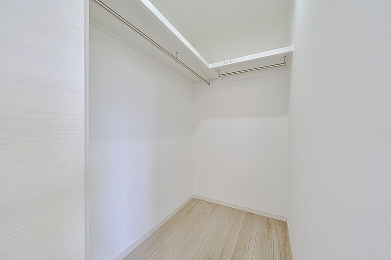 【施工例】大容量のウォークインクローゼットは大切なお洋服も常に換気ができ、きれいな状態で保管することができるため長持ちします!お洋服だけでなく、お子さんのおもちゃや大事な趣味の道具まで収納できます!
