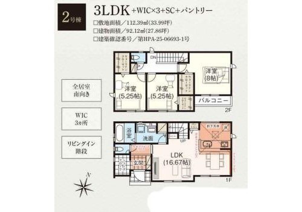 | 建物面積 | 93.56m2 | 土地面積 | 112.39m2 |