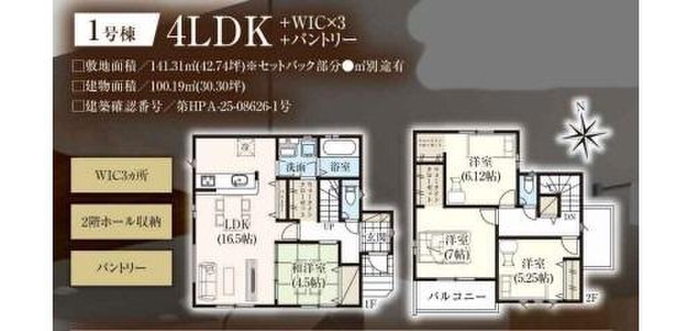 | 建物面積 | 97.7m2・100.19m2 | 土地面積 | 141.31m2・149.77m2 |