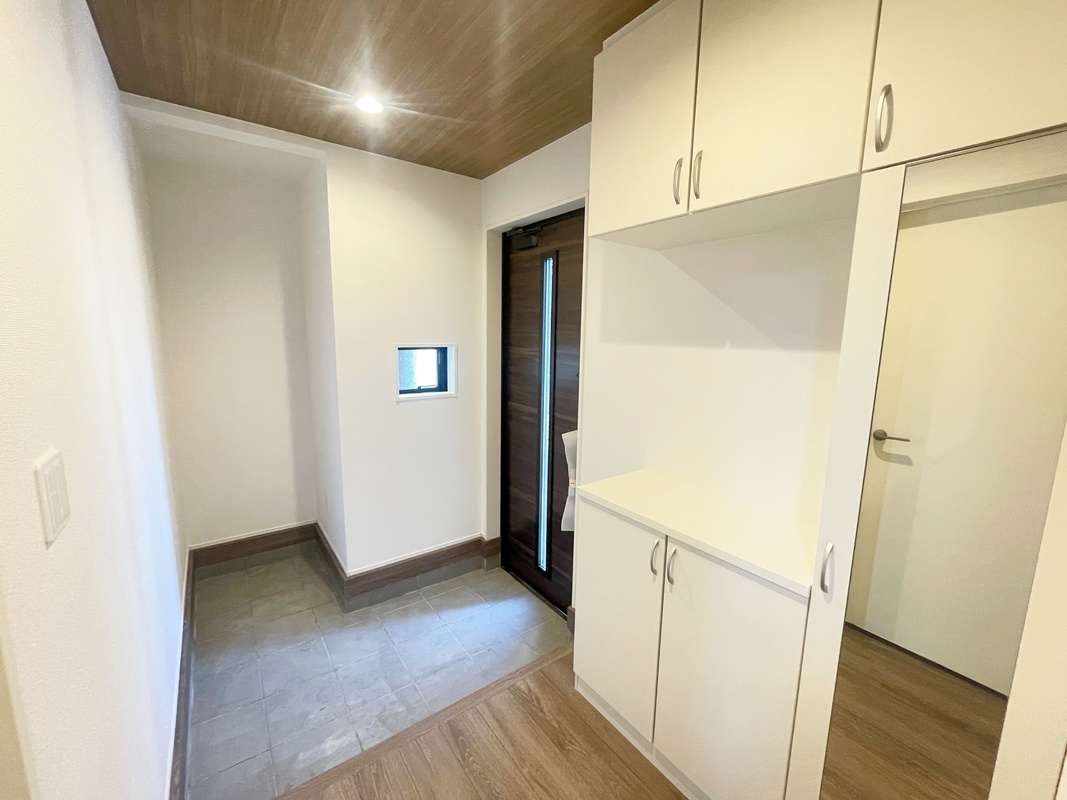 ロングブーツやトレッキング靴もすっぽり収まる玄関収納。靴はもちろんベビーカーやお子さんの遊び道具なども置いていただけます。