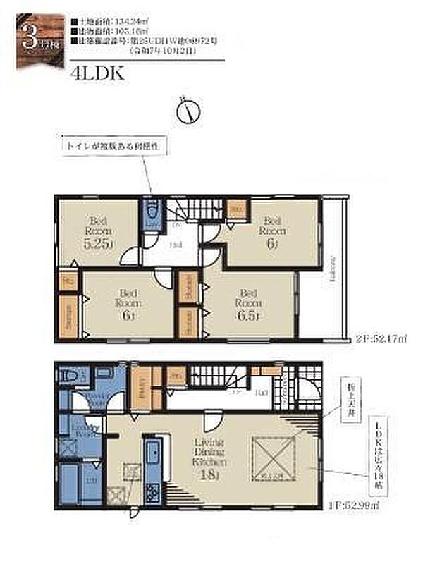 | 建物面積 | 101.02m2・105.16m2 | 土地面積 | 134.24m2~143.19m2 |