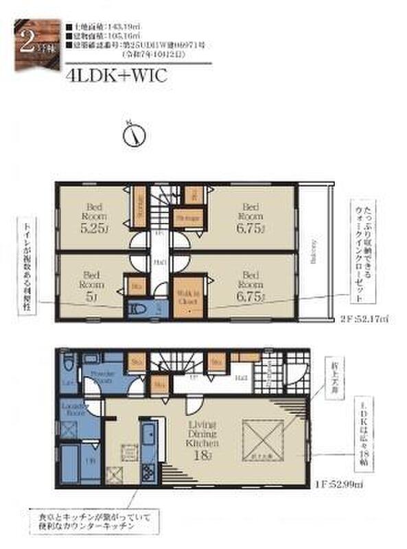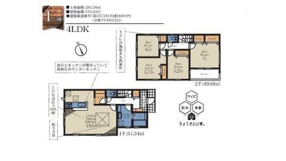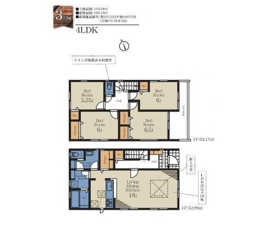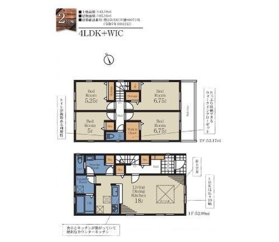 | 建物面積 | 101.02m2・105.16m2 | 土地面積 | 134.24m2~201.38m2 |