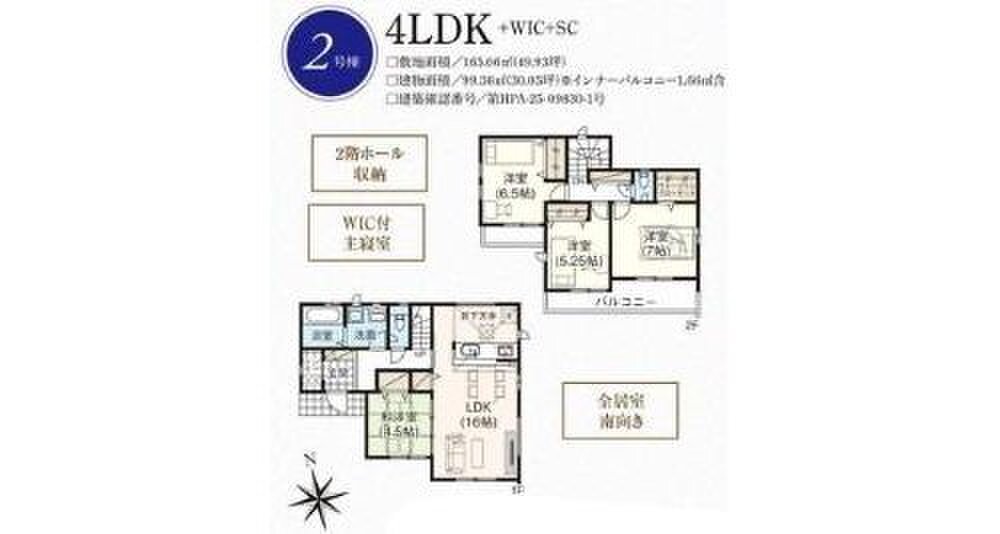 2号棟 間取り 4LDK 価格 3299万円 建物面積 99.36m2 土地面積 163.66m2 -
