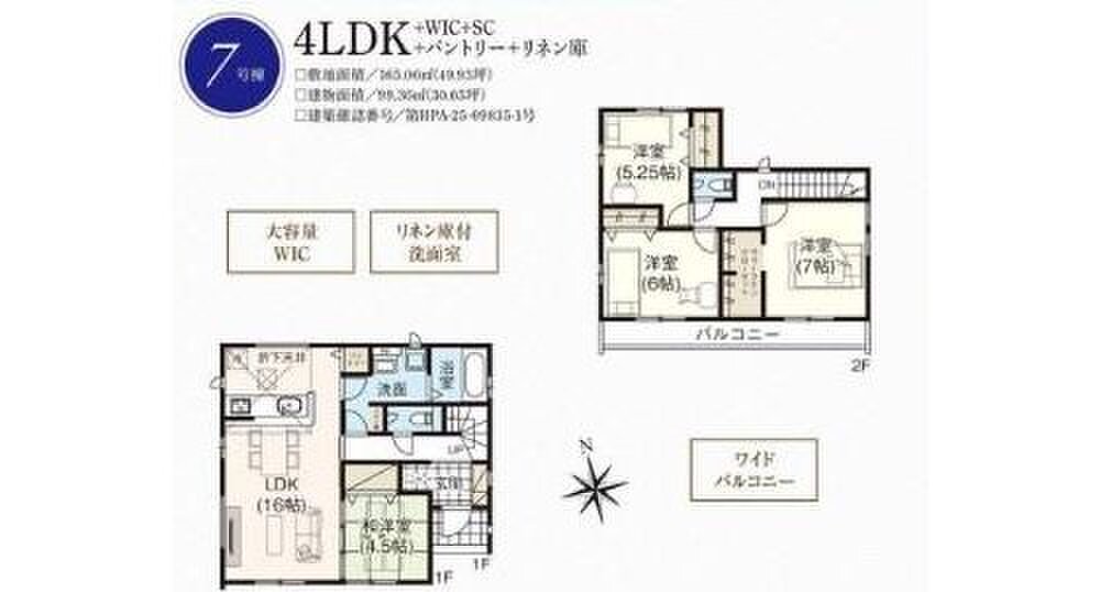 7号棟 間取り 4LDK 価格 2999万円 建物面積 99.36m2 土地面積 165.06m2