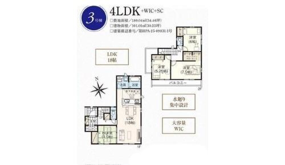 3号棟 間取り 4LDK 価格 3399万円 建物面積 101.01m2 土地面積 180.04m2 -