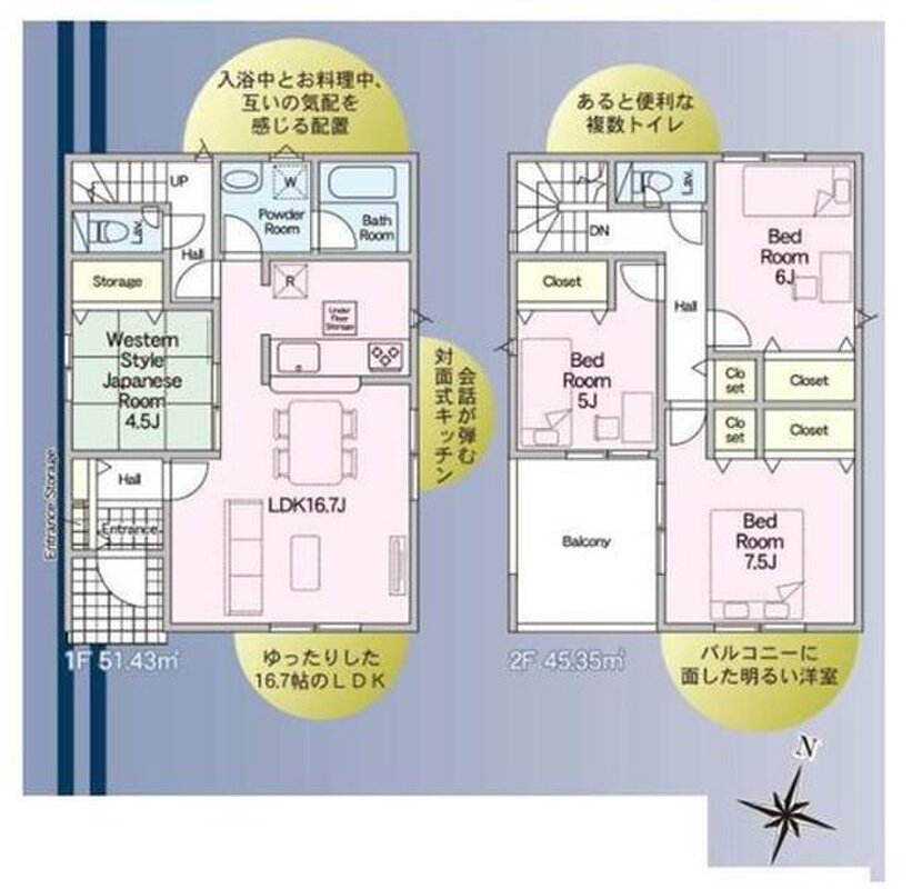 | 建物面積 | 95.57m2・96.78m2 | 土地面積 | 131.98m2 |