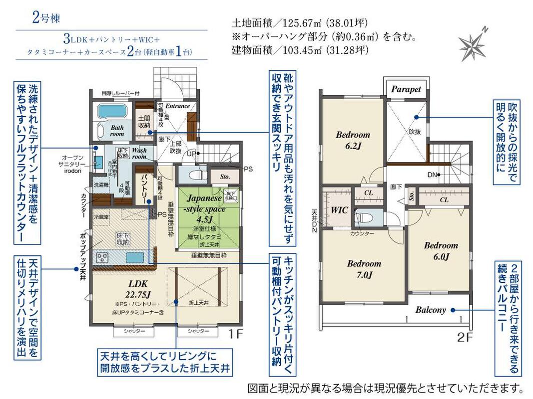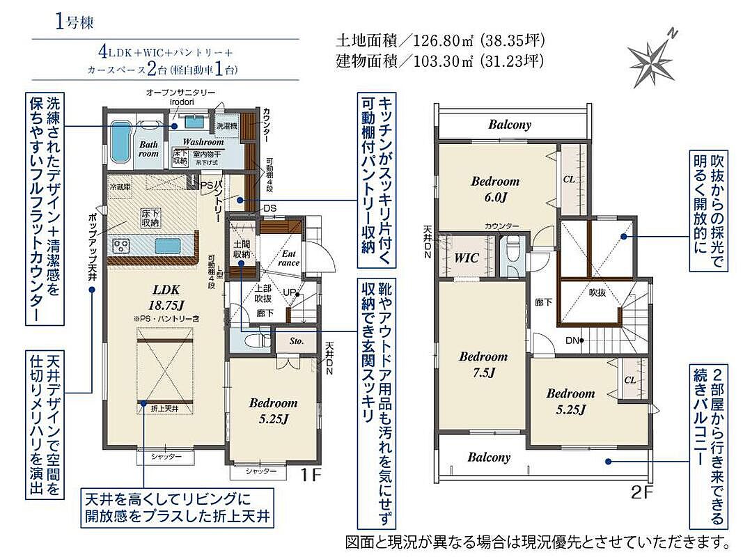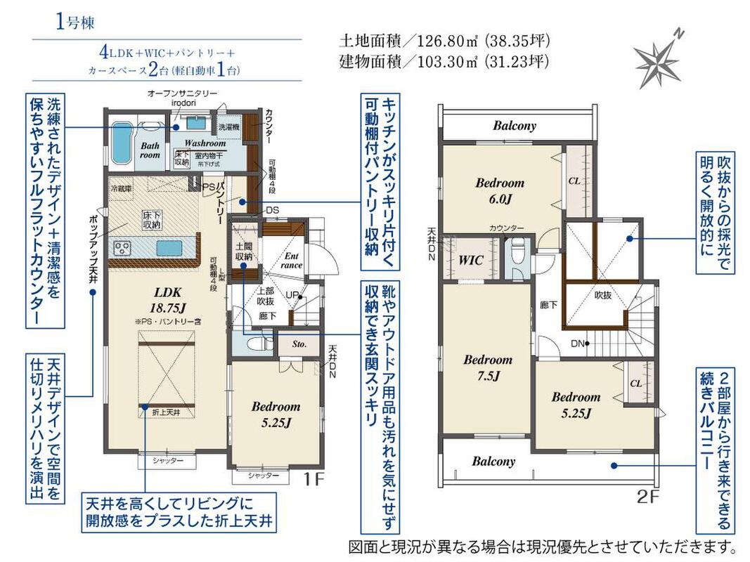 | 建物面積 | 103.3m2・103.45m2 | 土地面積 | 125.67m2・126.8m2 |