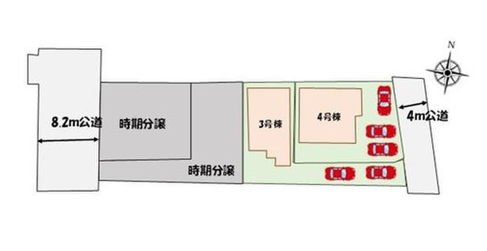 | 駐車場 | 2台 ~ 3台 | 道路の幅員 | 道路幅:4m、アスファルト舗装 |
