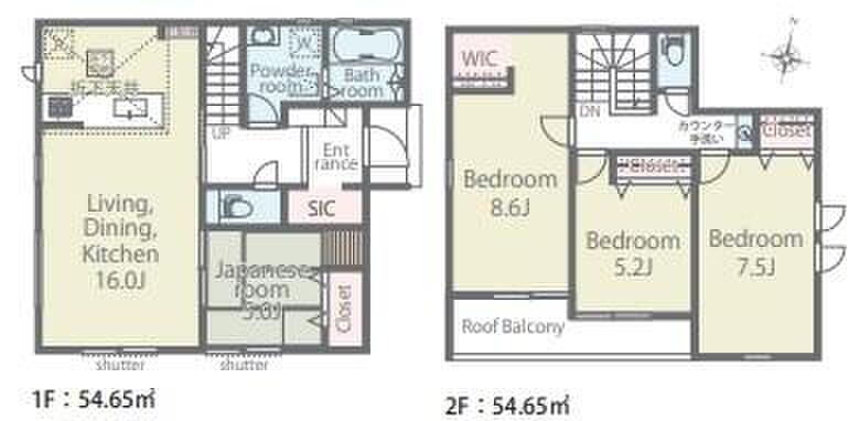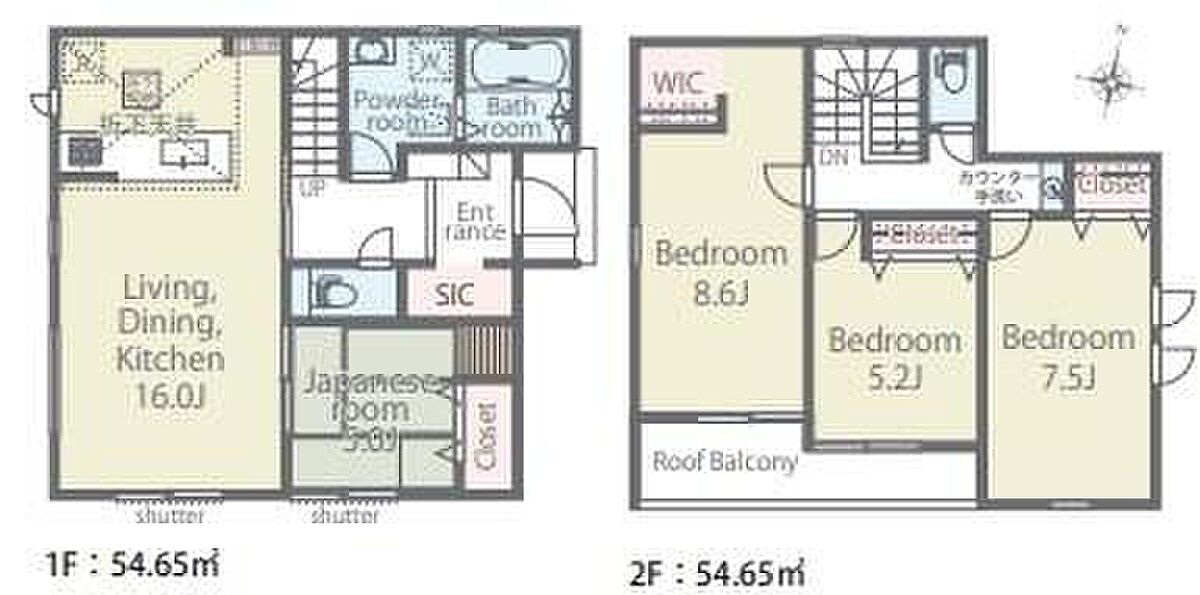 | 建物面積 | 99.37m2・109.3m2 | 土地面積 | 138.13m2・147.93m2 |