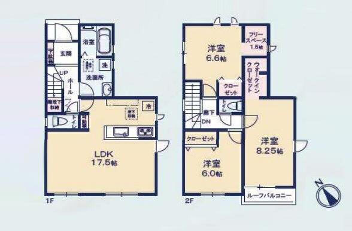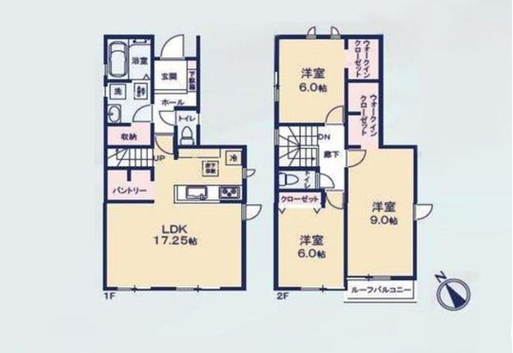 | 建物面積 | 95.22m2・96.05m2 | 土地面積 | 93.11m2・95.41m2 |