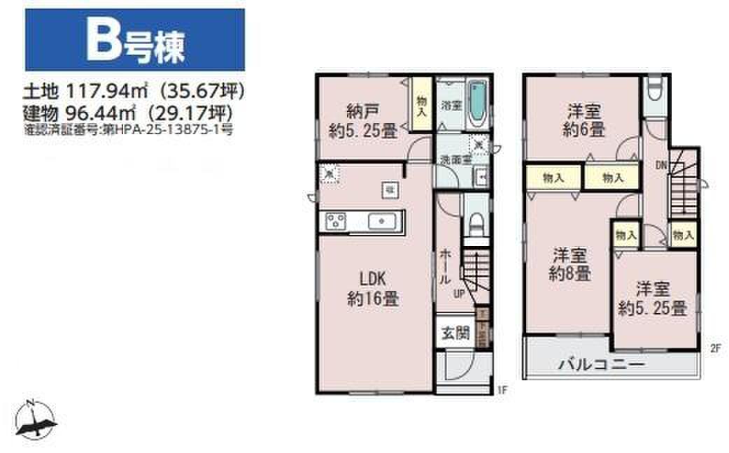 | 建物面積 | 96.44m2~97.09m2 | 土地面積 | 109.45m2~120.52m2 |