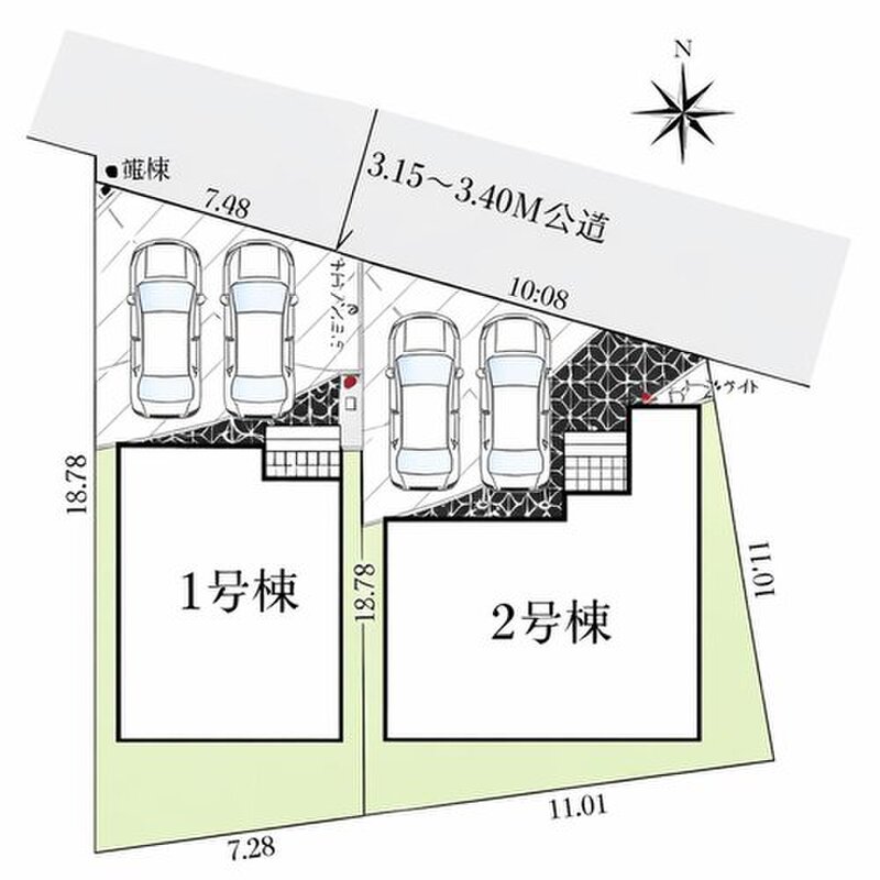| 駐車場 | 2台 | 道路の幅員 | 道路幅:3.1m~3.4m、アスファルト舗装、北側3.15m~3.40公道 |