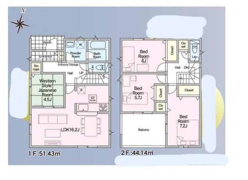 | 建物面積 | 93.15m2~97.59m2 | 土地面積 | 123.01m2~124.65m2 |