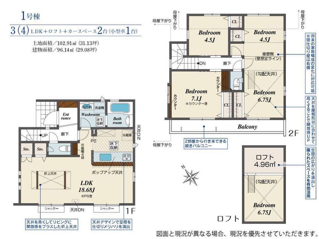 | 建物面積 | 96.14m2 | 土地面積 | 102.91m2 |