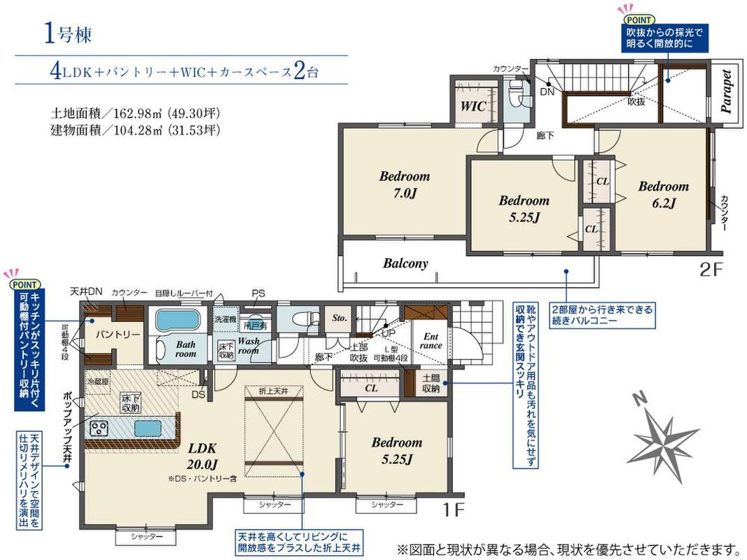 | 建物面積 | 104.28m2 | 土地面積 | 162.98m2 |