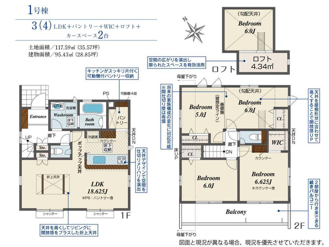 | 建物面積 | 95.43m2 | 土地面積 | 117.59m2 |