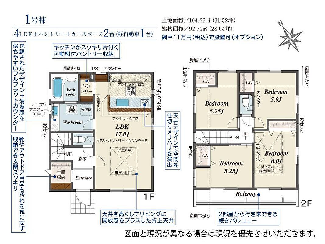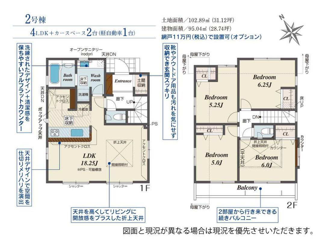 | 建物面積 | 92.74m2・95.04m2 | 土地面積 | 102.89m2・104.23m2 |
