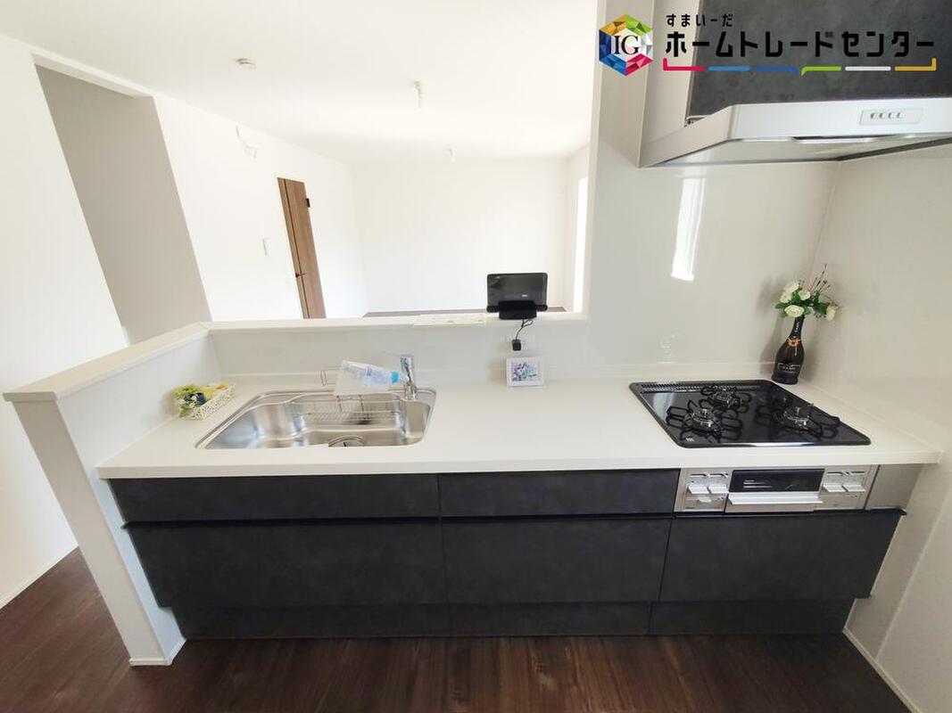 システムキッチン採用!収納豊富で見栄えも良く、お手入れもスムーズです♪カウンターキッチンでリビングが見渡せるので、お子様を見守りながらお料理も出来るので安心です!