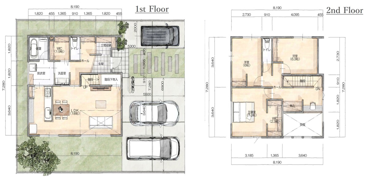 - ※完成予想図やCG合成画像は、門塀・植栽・庭・外観等、実際とは多少異なる場合があります。