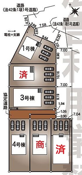 | 駐車場 | 1台 ~ 3台(3台分のカースペース) | 道路の幅員 | 北東側6.0m~7.0m |