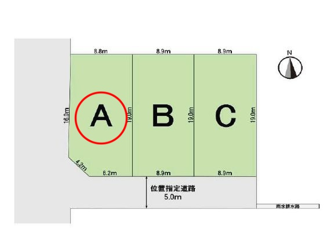 | 駐車場 | 3台(カースペース3台分) | 道路の幅員 | 西側4.2m、南側5.0m ※位置指定道路の為共有持ち分(各1/4) ※雨水排水に伴う地役権設定有り |