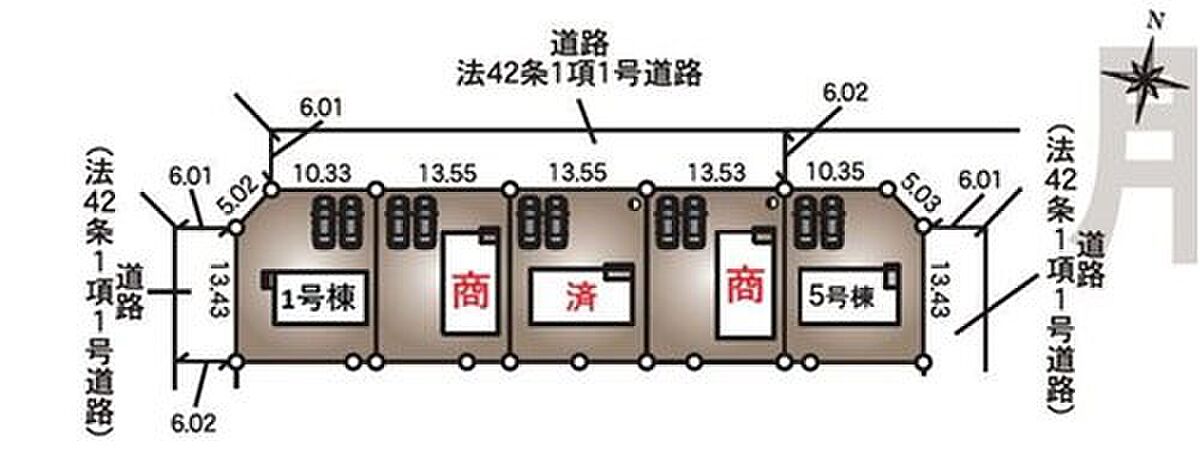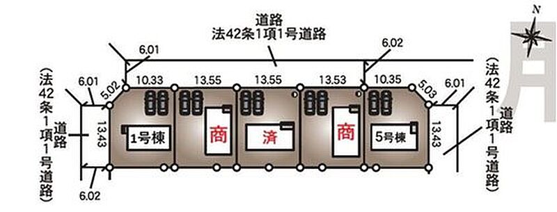 | 駐車場 | 2台(カースペース2台分) | 道路の幅員 | 北側6.01m、西側6.02m |
