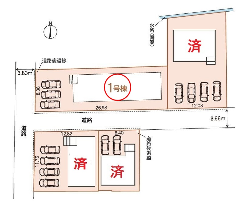| 駐車場 | 3台(カースペース3台分) | 道路の幅員 | 南側3.6m、西側3.8m |