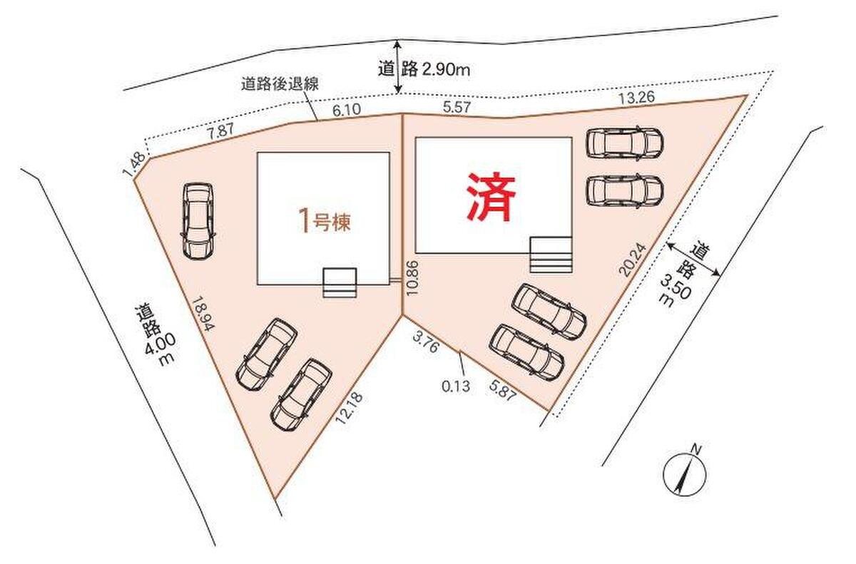 | 駐車場 | 3台 | 道路の幅員 | 道路幅:2.9m~4m、アスファルト舗装、北側2.9m、東側3.5m、西側4.0m公道 |