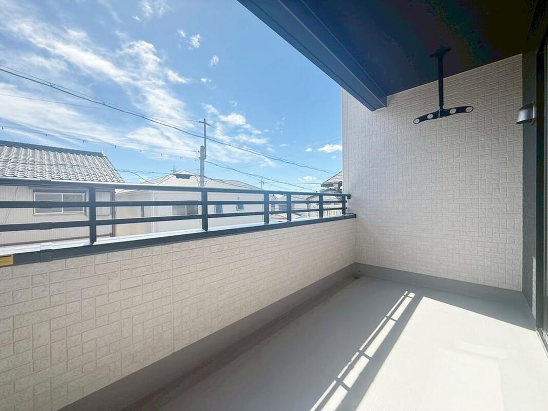奥行を広めに取ったバルコニー♪家族分の洗濯物もしっかり干せます。日当たりも良く、毎日のお洗濯が楽しくなりそう♪
