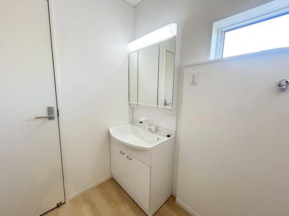 暮らしを快適にする三面鏡仕様の洗面化粧台。収納力と機能性に優れた使いやすい設備で、忙しい朝の身支度もスムーズに♪