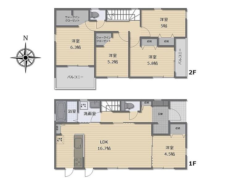 2部屋にウォークインクローゼット完備