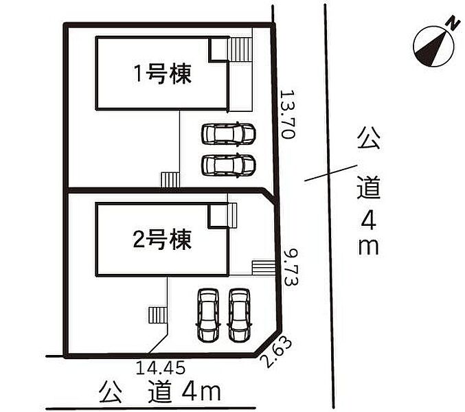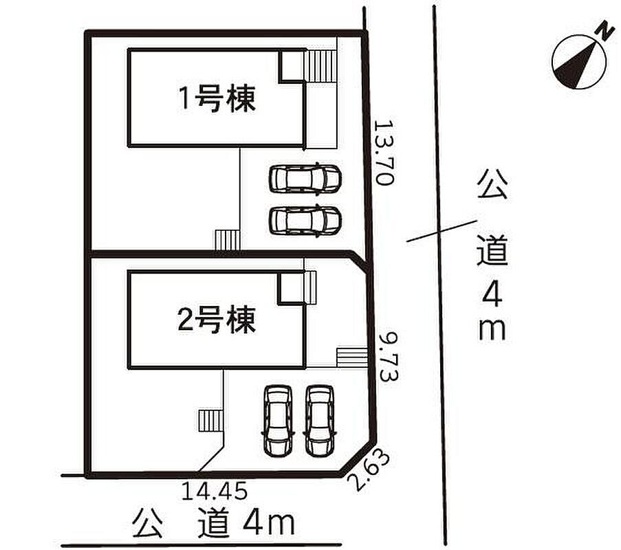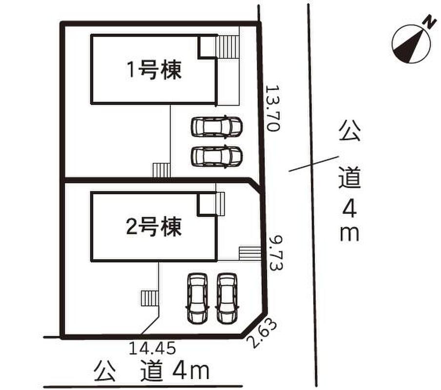 | 駐車場 | 2台 | 道路の幅員 | 道路幅:4m、アスファルト舗装、南東側4.0m北東側4.0m公道接道 |