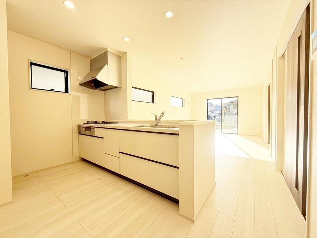 大型スライド収納付きで、すっきり片付けやすいキッチンです。床下収納もついています♪