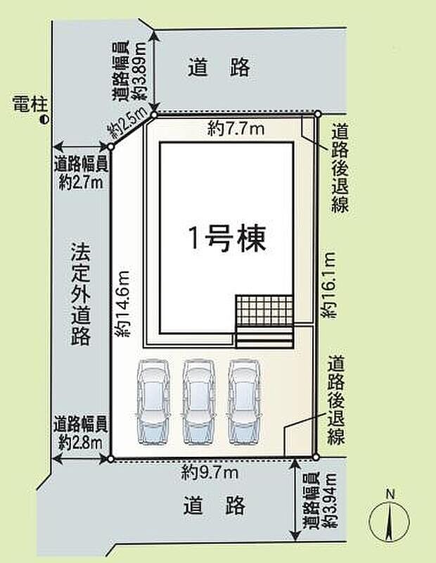 | 駐車場 | 3台 | 道路の幅員 | 道路幅:2.7m~3.9m、アスファルト舗装、他備考欄参照 |
