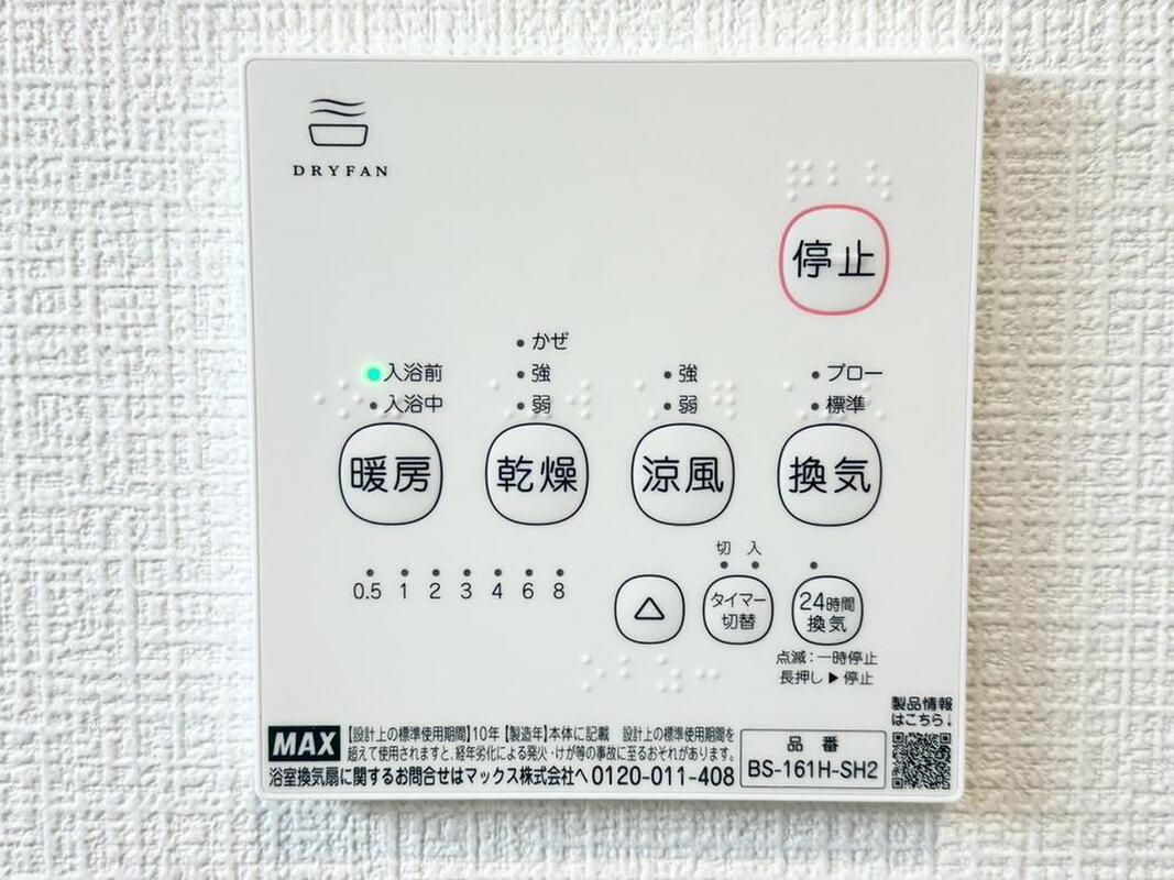浴室には乾燥機完備です!雨天での洗濯物の乾燥に困りません。冬には浴室を温めヒートショックを防げます!