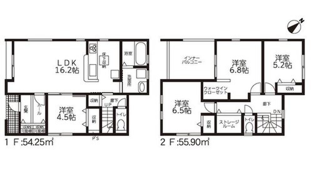 | 間取り | 4LDK+S(納戸)・5LDK | 建物構造 | 木造在来軸組工法2階建(910モジュール) |