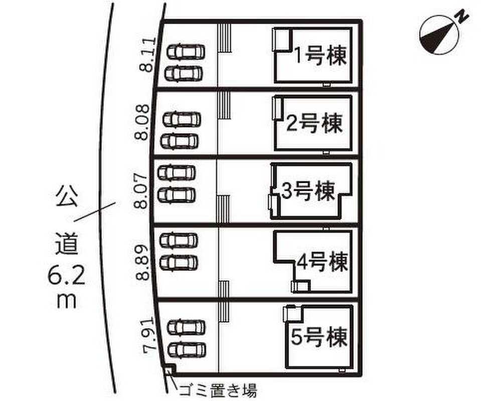 | 駐車場 | 2台 | 道路の幅員 | 道路幅:6.2m、アスファルト舗装、南西側6.2m公道接道 |