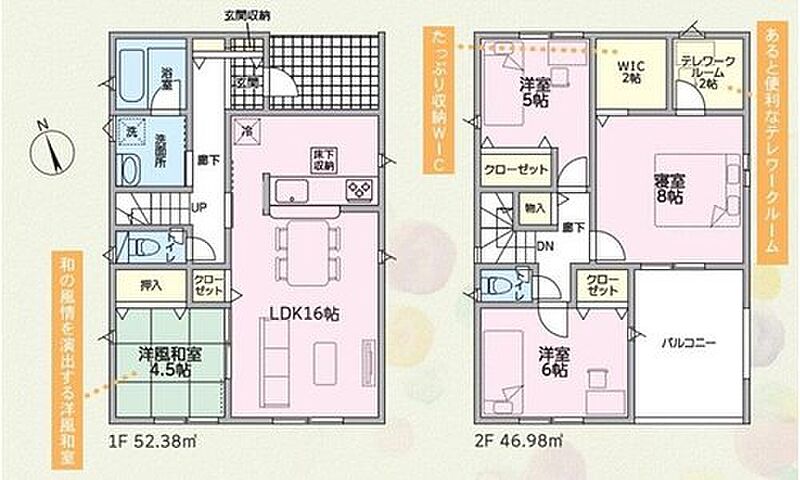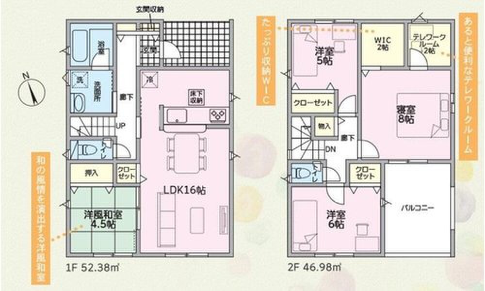 | 建物面積 | 98.82m2・99.36m2(29.89坪・30.05坪) | 土地面積 | 231.2m2・317.48m2(69.93坪・96.03坪) |