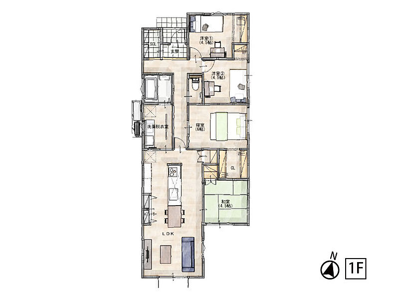 - ※完成予想図やCG合成画像は、門塀・植栽・庭・外観等、実際とは多少異なる場合があります。